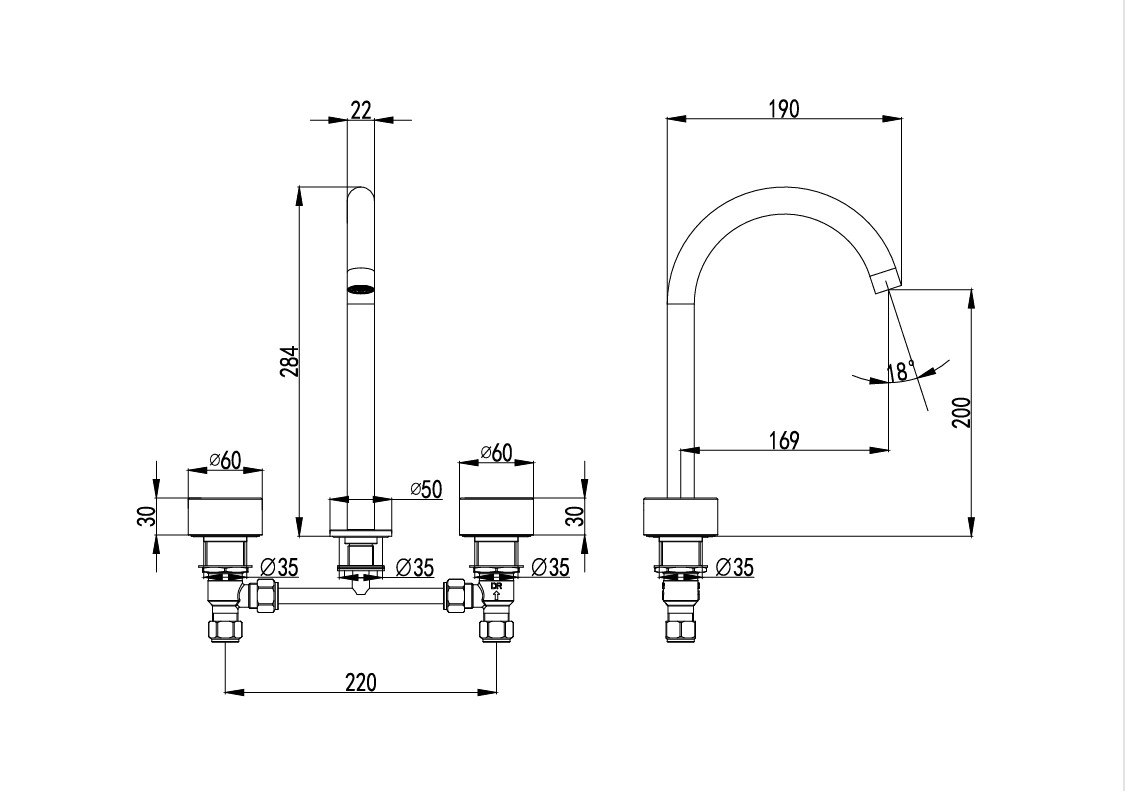 • 1/4 turn ceramic disc spindles